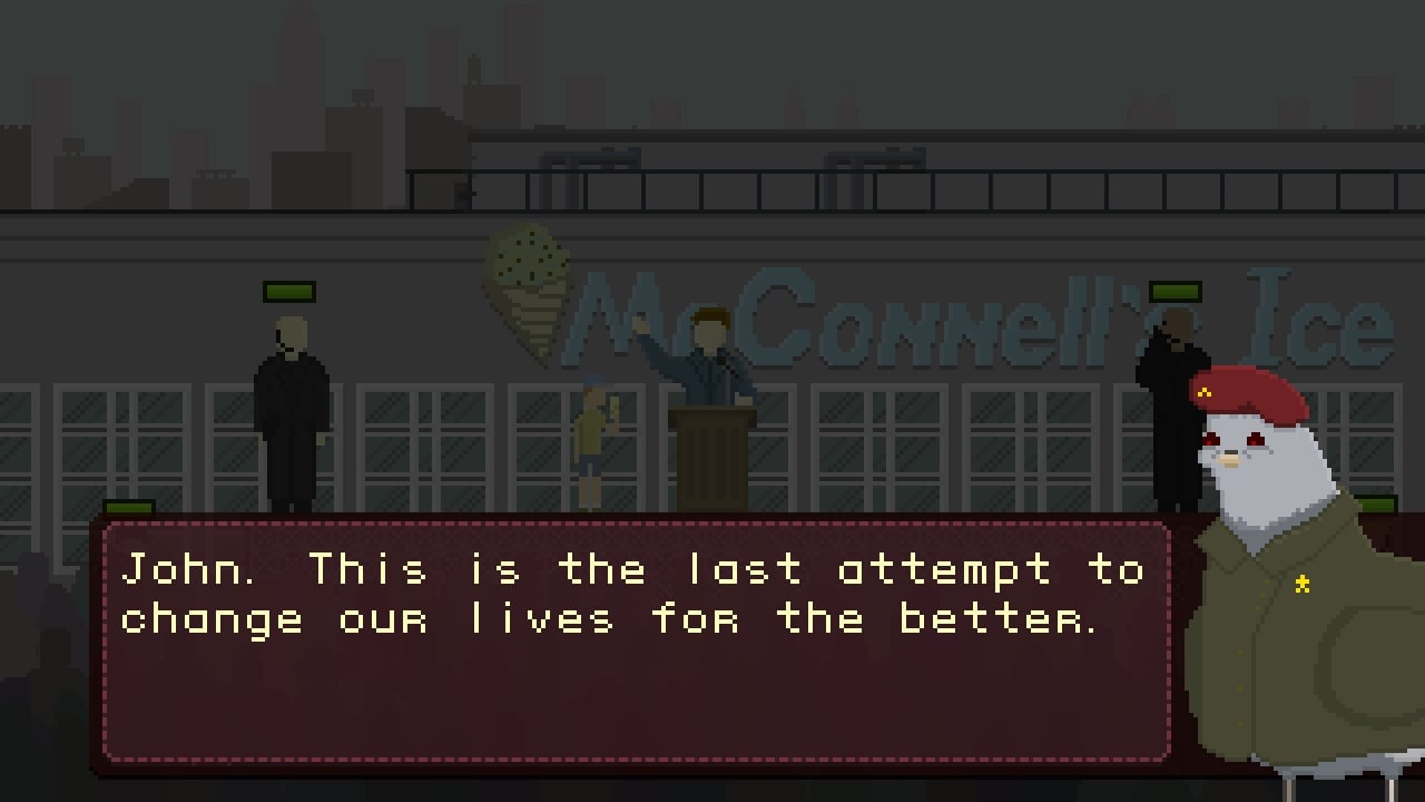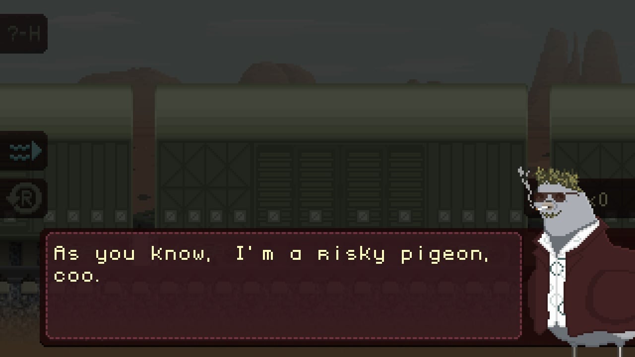 Технически проект является убивалкой времени. Но создатели попытались компенсировать это подачей. В Grand Pigeon’s Duty присутствуют элементы визуальной новеллы, так что диалогов тут много. Местная история является оригинальной и обладает нелинейностью. Даже несколько концовок завезли. Эпизоды можно перепроходить, чтобы увидеть весь контент. Также есть отсылки на мемы из интернета последних лет, включая "Зеленого слоника" и смешное коверканье имени британского актера Бенедикта Камбербэтча.