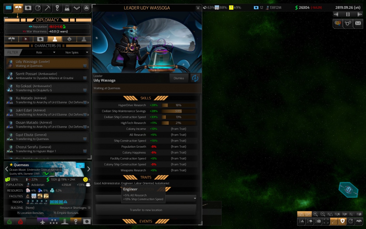 Пользователь в космическом симуляторе переносится в огромную Галактику, которая состоит из более, чем 2 тысяч звездных систем, множества тысяч планет, лун, астероидов, что предстоит исследовать и использовать, к примеру, для добычи ценных минералов или завоевания. Здесь также возможно наладить дипломатические отношения с местными обитателями. Благодаря внутри игровому редактору геймер сам устанавливает разные параметры, например, выбирает нужное число звездных систем, планет, астероидов, космических кораблей, баз, монстров-врагов, и устанавливает атрибуты для своей Империи. В случае необходимости игрок всегда может активировать справку, чтобы узнать из описания о разных элементах, расположенных на экране, или же прочесть Галактопедию, которая здесь также прилагается, где описаны игровые элементы и инструменты. В симуляторе космоса необходимо действовать в каждом из секторов Галактики, пытаясь заполучить собственную выгоду из исследования, эксплуатации, расширения территории и уничтожения противников.