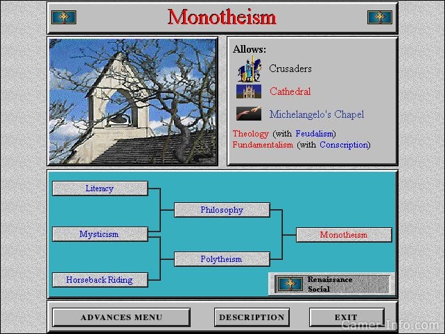 В Sid Meier's Civilization 2 пользователь сможет ощутить себя настоящим божеством, которому необходимо следить за развитием человечества и наблюдать за его совершенствованием. Под его руководством человеческая цивилизация сможет пройти путь от каменного века до современности и дальнейшего вероятного прогресса по случайному сценарию. Начнутся ли между народами массовые войны спустя столетия или люди смогут прийти к мирным соглашениям?