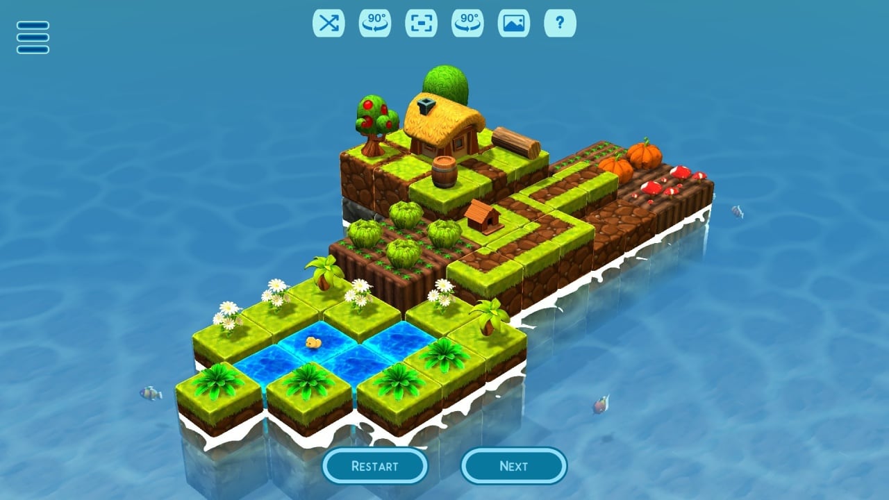 Island Farmer - Jigsaw Puzzle - головоломка с элементами поинт-н-клик приключения, в котором необходимо строить фермы на плавающих островах. Требуется создать полноценный архипелаг, размещая или переставляя блоки. Перспектива представлена изометрической камерой. Исследуя трехмерную местность, нужно решать разные пазлы и задачки. Постепенно сложность геймплея увеличивается, подкидывая более сложные головоломки.