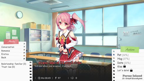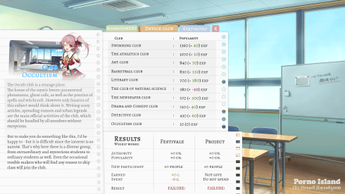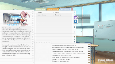 Также в новелле присутствуют классические элементы РПГ. Таким образом, пользователь может прокачивать способности своего персонажа – улучшать те же навыки общения, убеждения и другие, ведь они напрямую зависят от того, насколько эффективными окажутся действия перса. Стоит отметить, что все обитатели учреждения имеют уникальные черты характера, которые чрезвычайно важно учитывать если есть желание разблокировать постельные сцены как можно быстрее.