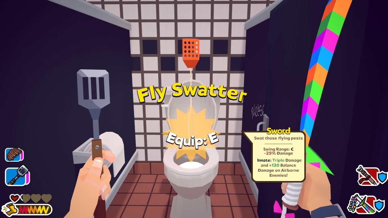 Dad by the Sword предлагает почувствовать себя в роли своего папы, который надевает свои любимые шорты и отправляется на битву со злобными "Анти-папами". В этой игре тебе предстоит использовать свою тактическую смекалку и креативность, чтобы одолеть врагов. Ты будешь сражаться в уникальном первом лице, применяя меч и другие дадские аксессуары, чтобы разрушить слабые места в броне противника и срезать их конечности.