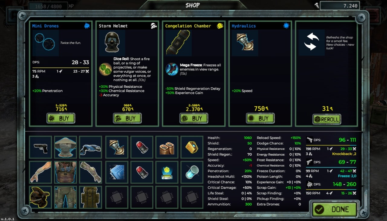 Но будь осторожен: мгновение невнимательности в Scrappage может стоить тебе жизни, и тогда тебе придется начать все заново! Собирай утиль, чтобы покупать и улучшать предметы или части тела между уровнями, сражайся против более чем 40 различных видов врагов, проходи уровни с процедурно-генерируемым контентом в девяти разных темах, используй сотни уникальных частей тела и предметов, собирай опыт для открытия постоянных улучшений. А для начинающих игроков предусмотрен специальный легкий режим с автоматической прицеливанием.