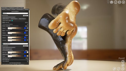 HAELE 3D - Feet Poser Pro еще больше обогащает ваш творческий процесс множеством инструментов. Вы можете легко применять предустановленные анимации и позы, манипулировать элементами окружения и изменять условия освещения для достижения желаемого визуального эффекта. Программа позволяет даже определить угол наклона камеры, ее местоположение, положение и угол обзора для получения идеального кадра.Среди его особенностей - редактируемое освещение, предлагающее три различных варианта освещения, с которыми можно экспериментировать: 3-точечный свет с настраиваемым цветом и интенсивностью, свет окружения с настраиваемой картой HDRI и интенсивностью, а также свет земли с настраиваемым цветом и интенсивностью. Программа также предоставляет различные варианты фонов, включая студийные HDRI-фоны, однотонные и пользовательские фоны.