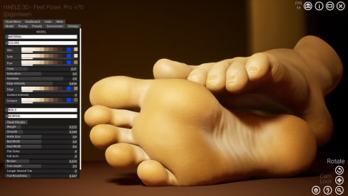 HAELE 3D - Feet Poser Pro - бесценный инструмент, призванный помочь художникам в освоении сложного искусства иллюстрирования анатомии стопы. Эта удобная программа предлагает широкий набор функций и анимаций, отвечающих вашим специфическим художественным требованиям, независимо от того, хотите ли вы получить максимально реалистичное изображение или более стилизованное. В программе имеется широкий набор опций для тонкой настройки ваших творений. От изменения позы и освещения до настройки материалов и цветов - все это дает возможность творческого контроля в ваших руках. Интуитивно понятный интерфейс позволяет без труда выбирать цвета для различных компонентов стопы, настраивать материалы кожи и ногтей, а также совершенствовать формы с помощью опций морфинга.