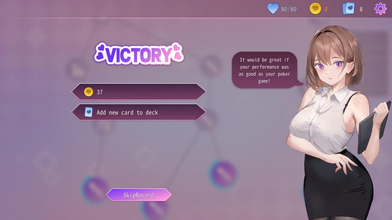 Hypnosis Card - это уникальная смесь карточного боя и околдовывания. Вы будете собирать колоды, наполненные мощными картами, каждая из которых представляет собой часть тела - любопытный поворот в жанре. А ваши враги? Не просто монстры, заметьте. В игре вам предстоит сразиться с пятью девушками, у каждой из которых свои причуды и уязвимые места. Итак, кто же вы в этой любопытной саге о картах? Опытная акула покера, ваша жизнь вращается вокруг звона фишек и азарта сделки. Одиночка? Бывало и такое, сдавали выигрышную руку. Но в день вашего 30-летия судьба подбрасывает вам волшебную карту, которая наделяет вас способностью гипнотизировать этих пленительных милашек.