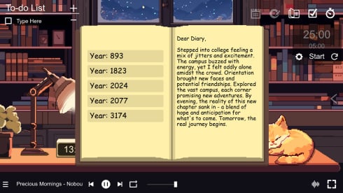По мере прохождения игры вы будете открывать новые окружения, саундтреки и функции, чтобы ваше путешествие к продуктивности было увлекательным и полезным. На заднем плане разворачивается тонкое повествование, добавляющее глубину вашему опыту и не мешающее сосредоточиться. Так что откажитесь от традиционной комнаты для занятий и откройте для себя мир - место, где продуктивность встречается с иммерсивной средой. Но это не просто красивые декорации. Каждое окружение может похвастаться своим собственным тонким повествованием, разворачивающимся по мере того, как вы работаете. Завершите задание, и история продолжится. Нужен перерыв? Окружающие звуковые ландшафты, тщательно подобранные в соответствии с обстановкой, омывают вас, помогая сосредоточиться и расслабиться. Думайте об этом, как об учебе с другом, который время от времени подбрасывает вам расслабляющую музыку и интересные истории.