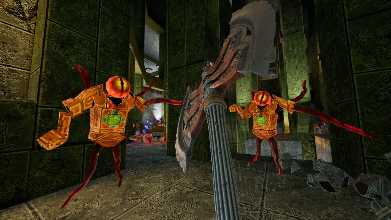 Плюс к тому, для особо любознательных, создатели разместили целую прорву секретов. Некоторые из них спрятаны настолько умело, что после их нахождения поневоле ощутишь себя великим детективом и Орлиным Глазом в одном флаконе. Взаимодействие с предметами и выключателями простое, как дважды два. Если видишь кнопку - подойди к ней или выстрели. Игрок передвигается так же бодро, как и знаменитые Doomguy, Duke Nukem и Quake Ranger. Самих уровней не много, но они огромны.