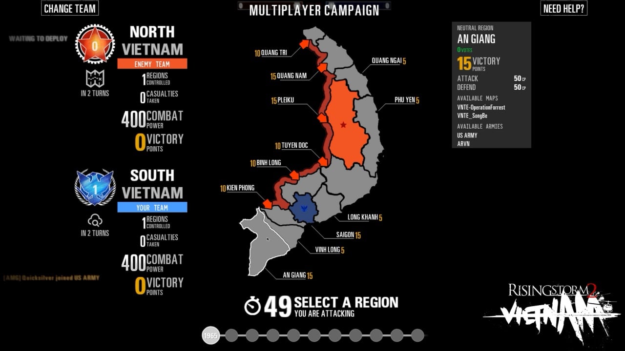 Большинство персонажей имеют схожие задачи для Севера и Юга. В игре есть система переоборудованных отрядов, благодаря чему их можно настраивать. Многопользовательские карты, которых в игре есть 8, воссозданы из реальных мест - джунглей, сельских и городских локаций. Здесь юзер выбирает из трех режимов прохождения - Territories, Supremacy, Skirmish и Кампания.