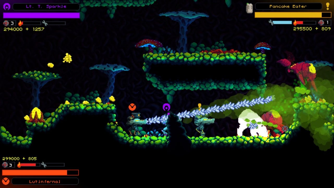 Hive Jump – независимый экшен-платформер с видом сбоку в футуристическом мире, где наука шагнула далеко за грань того, что ей доступно в нынешние времена. Этот проект собрал в себя фишки от жанра рогаликов и Run-n-shoot шутеров. Особенностью кампании является то, что она предлагает геймерам шанс пройти её в локальном кооперативном режиме, позвав поучаствовать в игровом процессе ещё трём людям.
